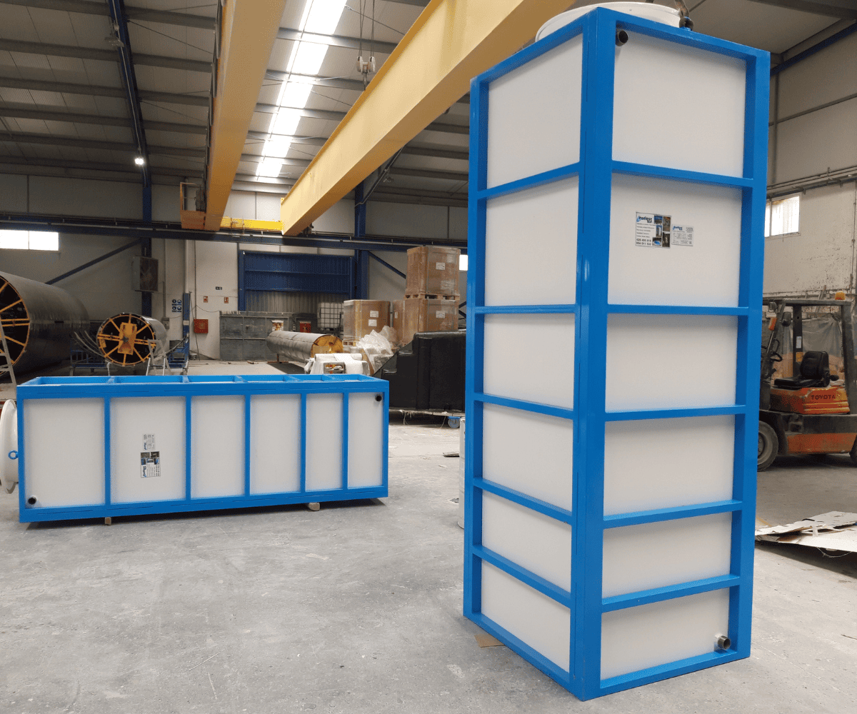 Los modelos de mayor tamaño incluyen refuerzos estructurales a partir de 1.000 litros. Estos pueden consistir en nervios perimetrales o refuerzos metálicos encapsulados. Así, se evita el abombamiento de las paredes planas.