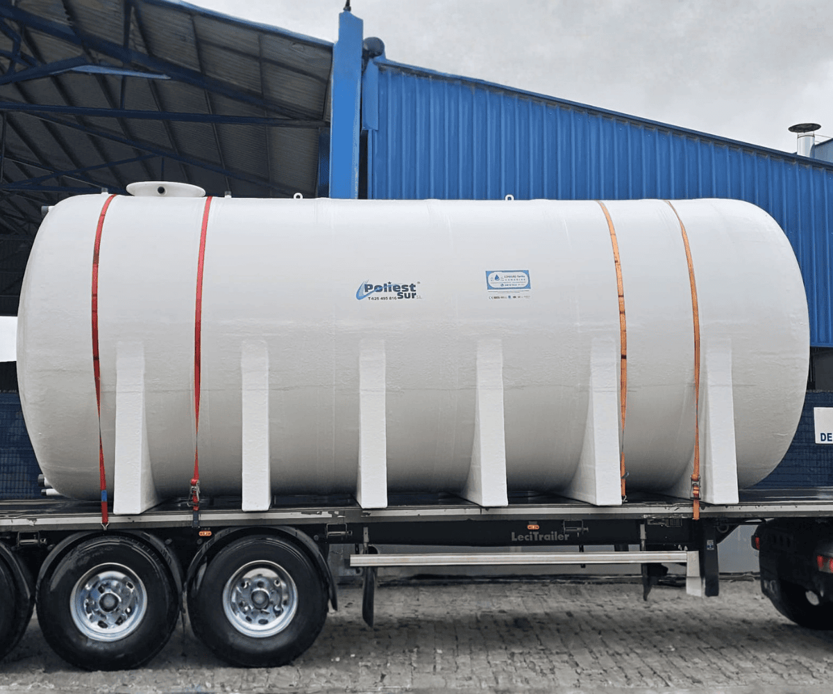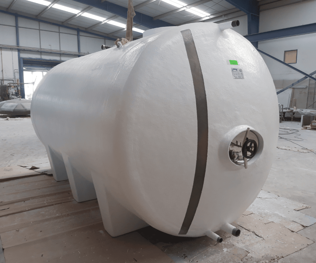 En PoliestSur, lo fabricamos en Poliéster Reforzado con Fibra de Vidrio (PRFV) mediante tecnología Filament Winding. De este modo, se obtiene una estructura ligera, sin costuras y con alta resistencia mecánica.